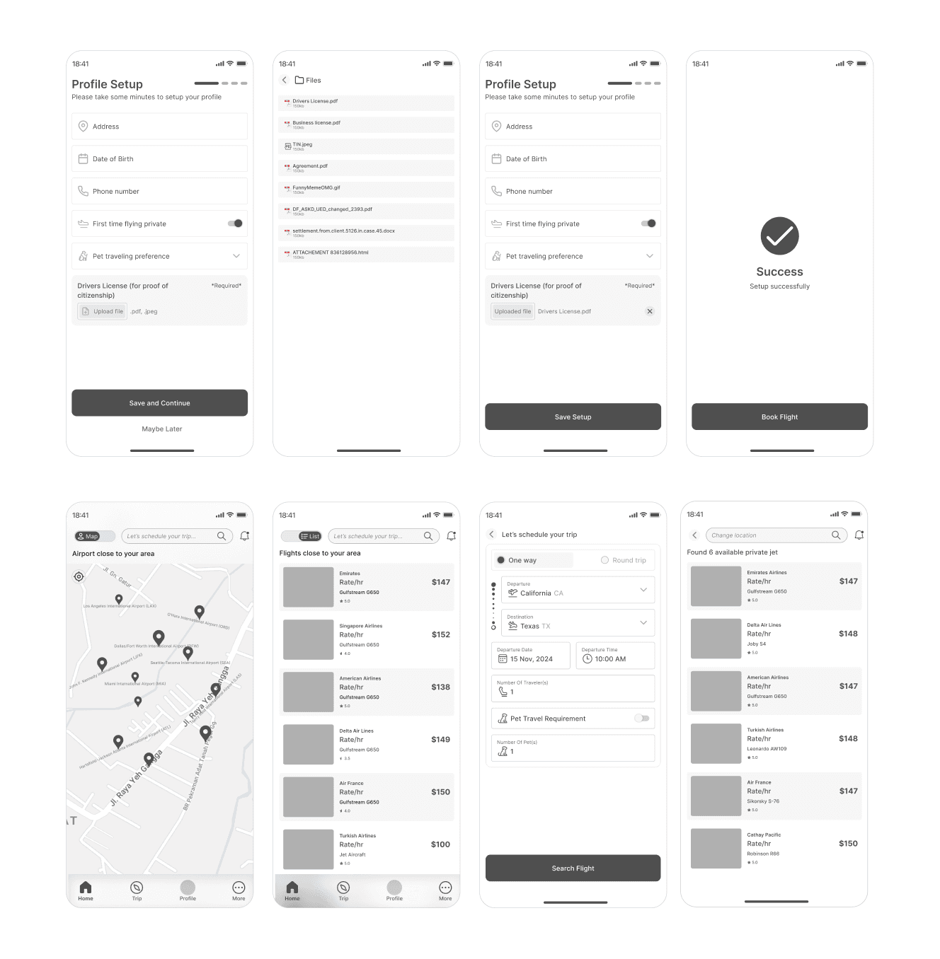 Wireframe (Profile Setup/Booking Process)